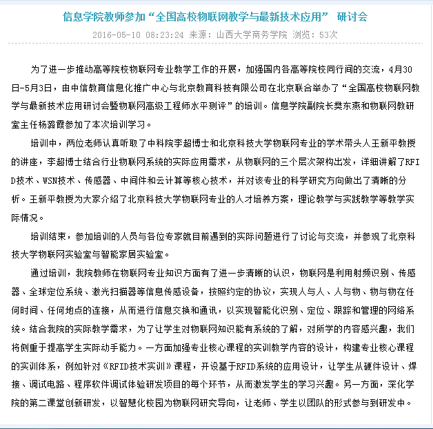• 关于举办全国高校物联网教学与最新技术应用研讨会的通知