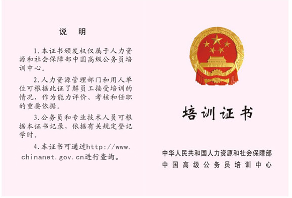 人保部证书
